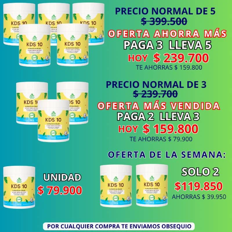 Ingredientes kds10:  crema de coco, proteína de suero lácteo, extracto de fresa, fosfato tricálcico, cloruro de magnesio, carbonato de calcio (calcio), fumarato ferroso (hierro), sulfato de zinc (zinc), selenito de sodio (selenio), dióxido de silicio coloidal, premezcla de vitaminas (vitamina c, e, b1 a b8, d y b12), estevia (endulzante natural), benzoato de sodio (conservante).